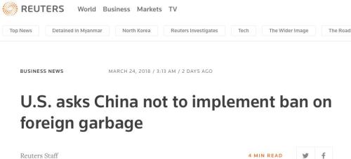 據(jù)路透社報道,會議上美方代表表示,中國對于可回收品的進口限制已經(jīng)極大地中斷了全球廢金屬供應(yīng)鏈的運轉(zhuǎn),要求中國取消對“洋垃圾”的進口禁令。